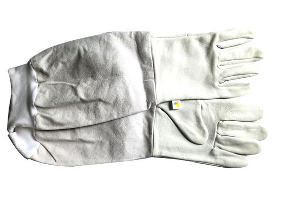 قفازات تربية النحل المريحة من جلد الغنم والقماش مع أكمام مرنة طويلة